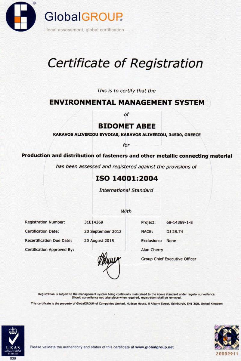 As part of the continuous improvement of environmental protection and occupational health and safety of employees, the company operates a certified environmental management system according to ISO 14001: 2004, which applies to all activities that take place in the factory of the company and in particular in the manufacture and process of all forms of screws and bolts.